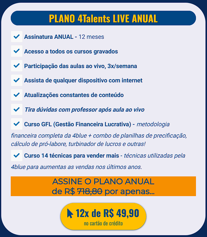 Se você fosse comprar cada curso da 4Talents separadamente você pagaria de R$297 a R$500 na média e até mesmo mais de R$1.000 em alguns…